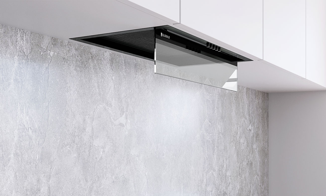 GLOBALO Dismo 60.1 Black - абсолютно непомітна вбудована витяжка. Вона характеризується надзвичайно компактними розмірами, стильним дизайном і відмінною продуктивністю. Вона має елегантну скляну передню панель зі світлодіодною стрічкою та кнопкове управління. 3 діапазони швидкості дозволяють адаптувати швидкість всмоктування до кількості випарів на вашій кухні. Панель із загартованого скла забезпечує комфорт і додатково захищає шафи від вологи. Прихована в шафі витяжка працює тихо (45 дБ на першій передачі), тому вона забезпечує комфорт для мешканців кухні. Максимальна продуктивність витяжки становить 455 м3/год.