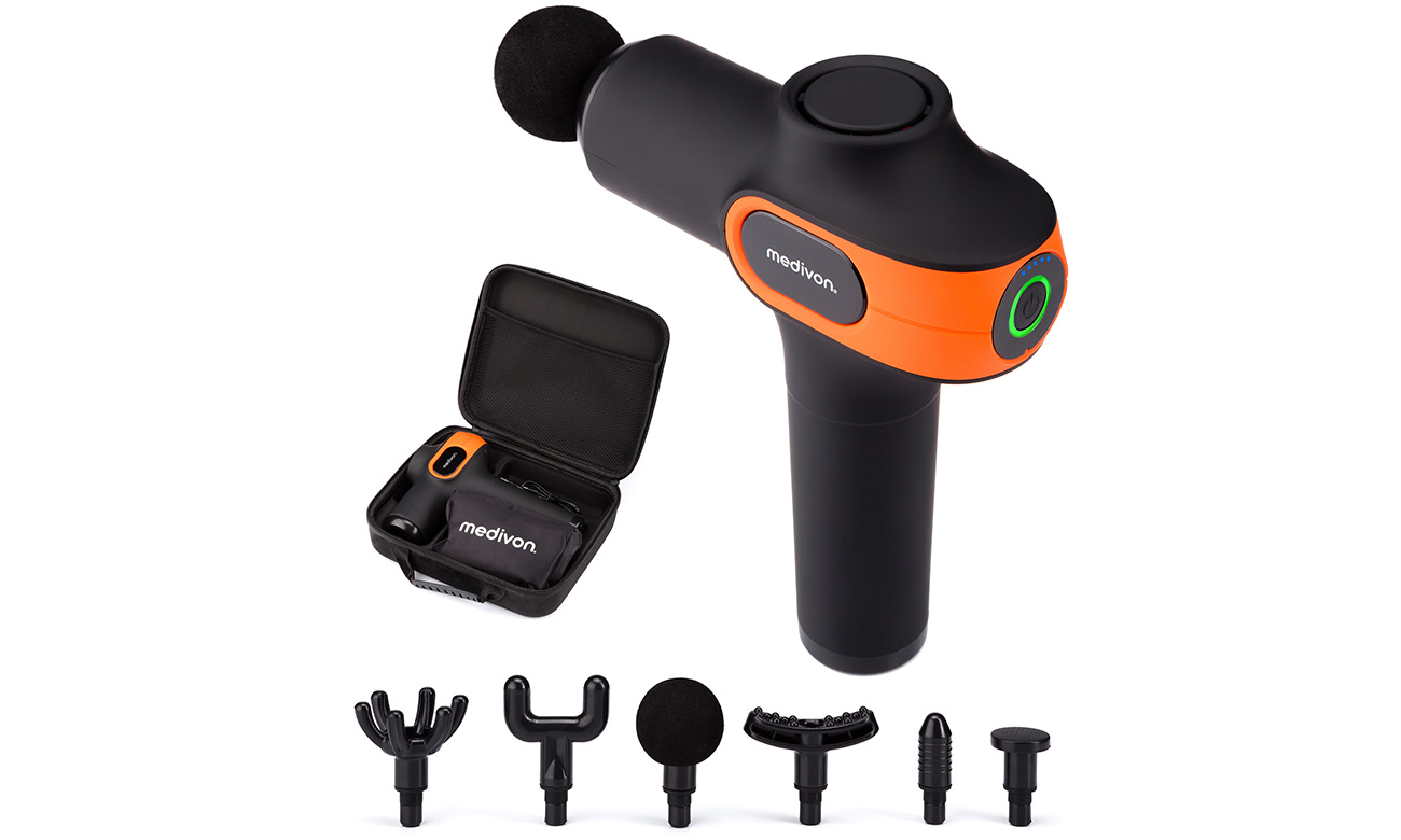 Ви відчуваєте м'язовий біль, дискомфорт в області шиї, потилиці, спини або ніг? Завдяки ударній терапії та вібромасажу Gun Vital чудово розслабить ваші м'язи, сприяючи відновленню після фізичних навантажень і прискорюючи загоєння травм. Gun Vital оснащений 6 змінними масажними головками, що дозволяє адаптувати терапію до ваших індивідуальних потреб. Якщо вам потрібен глибокий масаж шиацу, ніжна рефлексотерапія обличчя або потужний антицелюлітний масаж, у цьому наборі є все необхідне.