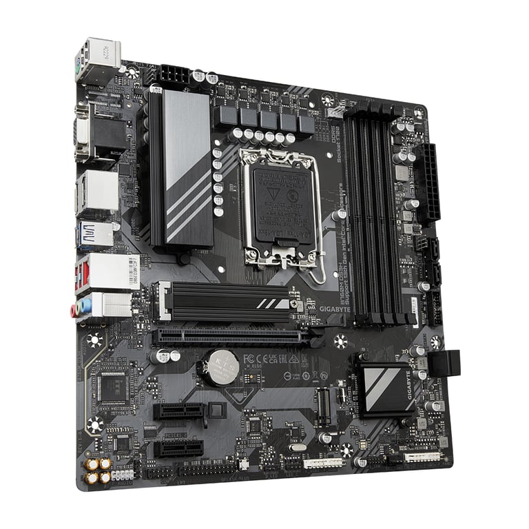 GIGABYTE B760M DS3H. Виробник процесора: Intel, Процесорний роз'єм: LGA 1700, Процесор: Intel® Celeron®, Intel® Core™ i3, Intel® Core™ i5, Intel® Core™ i7, Intel® Core™ i9,.... Підтримувані типи пам'яті: DDR5-SDRAM, Максимальний об'єм пам'яті: 192 ГБ, Тип слота пам'яті: DIMM. Підтримувані інтерфейси жорсткого диска: M.2, SATA III, Підтримувані типи дисків: HDD і SSD, Рівні запису: 0, 1, 5, 10, Максимальна роздільна здатність: 4096 x 2304 px. Підтримуваний тип USB: USB Type-A, USB Type-C
