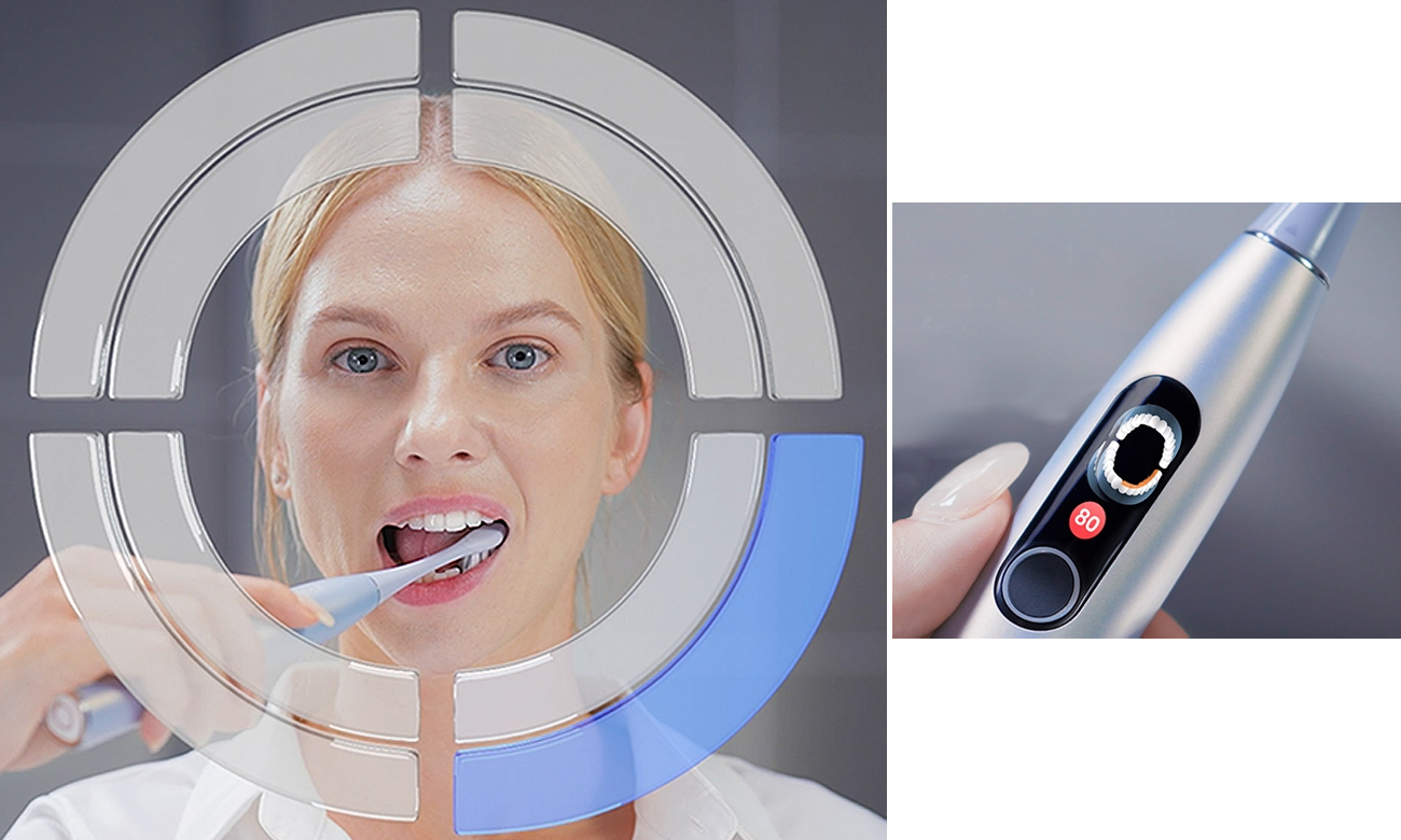 Під час кожного сеансу чищення вбудований у зубну щітку 6-осьовий гіроскопічний датчик відстежує рухи вашої руки у 8 зонах порожнини рота. Дані аналізуються алгоритмом зубної щітки, і коли ви закінчите чистку, на дисплеї з'являється графічна модель вашого рота з виділенням пропущених під час чищення ділянок.