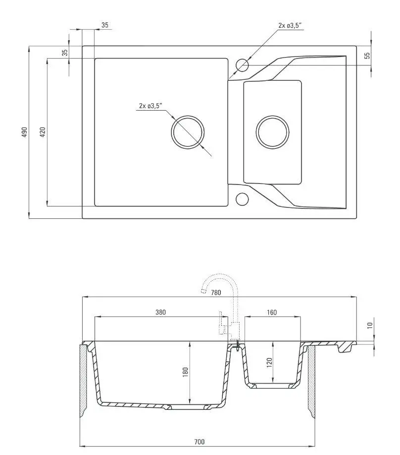 | Розміри мийки (Ш х Г) | 780 х 490 мм |