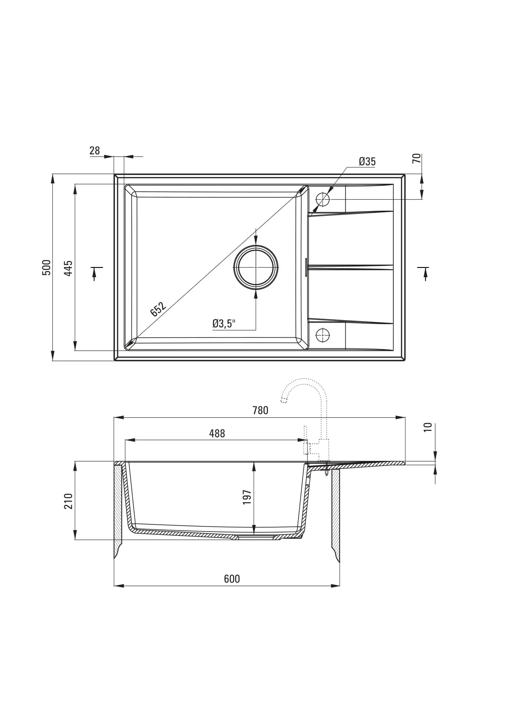 | Розміри мийки (Ш х Г) | 780 х 500 мм |