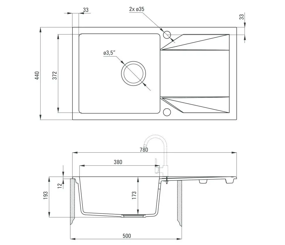 | Розміри мийки (Ш х Г) | 780 х 440 мм |
