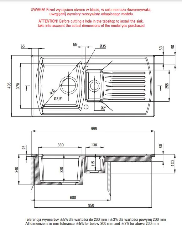 | Розміри мийки (Ш х Г) | 1000 х 500 мм |