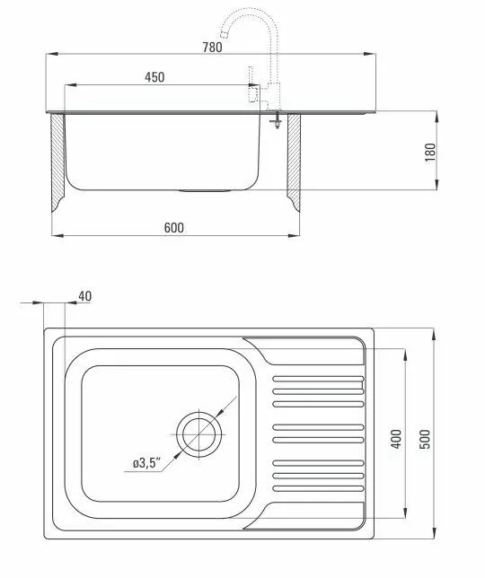 | Розміри мийки (Ш х Г) | 780 х 500 мм |