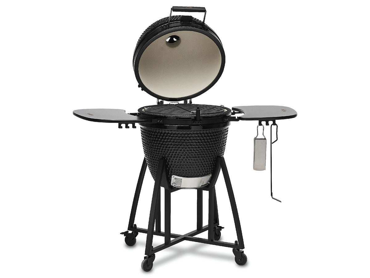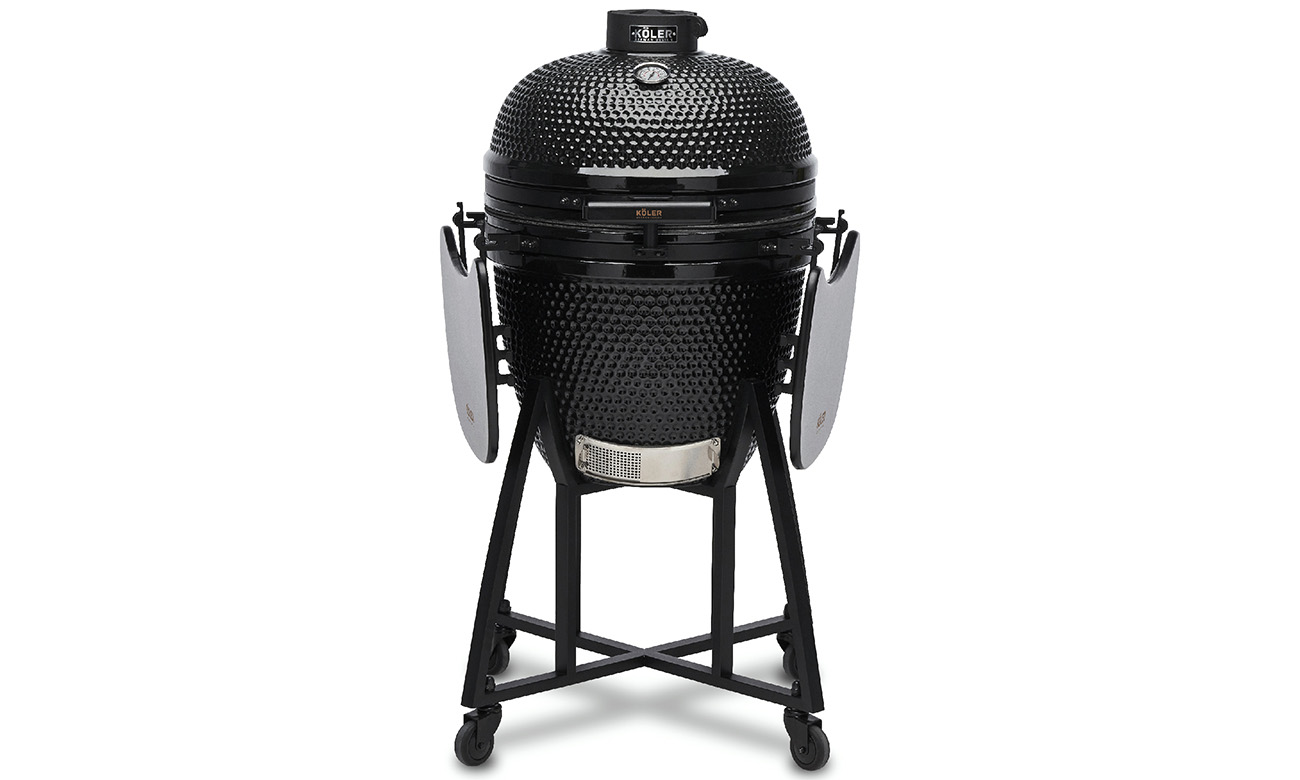Керамічний котел і нержавіюча сталь - це серце і душа гриля Köler Kamado EG21. Кераміка чудово утримує тепло, а сталева фурнітура з'єднує всю конструкцію разом. Ви легко встановите гриль в саду, на терасі або у внутрішньому дворику без необхідності переносити його - візок з нержавіючої сталі допоможе вам з цим завданням. Ви також знайдете дерев'яні бічні полиці та великий набір аксесуарів KÖLER PREMIUM™.