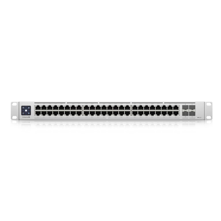 Комутатор Ubiquiti Switch Enterprise 48 PoE. Тип комутатора: Керований, багаторівневий комутатор: L3. Основні комутаційні порти Ethernet RJ-45 Тип портів: 2.5G Ethernet (100/1000/2500), Основні комутаційні RJ-45 Кількість портів Ethernet: 48. Пропускна здатність маршрутизації/комутації: 320 Гбіт/с. Стандарти зв'язку: IEEE 802.3, IEEE 802.3ab, IEEE 802.3ae, IEEE 802.3af, IEEE 802.3at, IEEE 802.3bz. Вхідна напруга постійного струму: 52 В. Роз'єм живлення: Вхідний роз'єм змінного струму. Підтримка PoE. Можливість монтажу в стійку, макет: 1U
