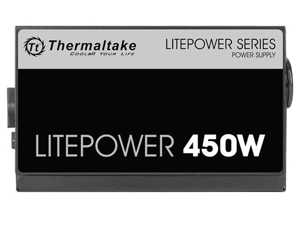 Thermaltake Litepower G2. Загальна потужність: 450 Вт, вхідна напруга змінного струму: 230 В, вхідна частота змінного струму: 50 - 60 Гц. Роз'єм живлення материнської плати: 24-контактний ATX, Peripheral (Molex) Довжина кабелю живлення: 450 мм, довжина кабелю живлення PCI Express: 45 см. Застосування: ПК, тип блоку живлення (БЖ): ATX, MTBF (середній час напрацювання на відмову): 100000 h. Колір виробу: чорний, Діаметр купола вентилятора: 12 см, Кількість вентиляторів: 1 вентилятор. Ширина виробу: 150 мм, Глибина виробу: 140 мм, Висота виробу: 86 мм