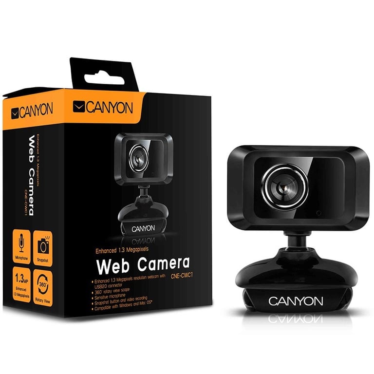 Canyon CNE-CWC1. Мегапікселів: 1.3 Мп, Максимальна роздільна здатність відео 1600 x 1200 px, Максимальна частота кадрів: 30 к/с. Стандартні комунікаційні рішення: USB 2.0, Колір виробу: чорний, Тип кріплення: Кліпса/підставка. Ширина виробу: 50 мм, Глибина виробу: 95 мм, Висота виробу: 95 мм