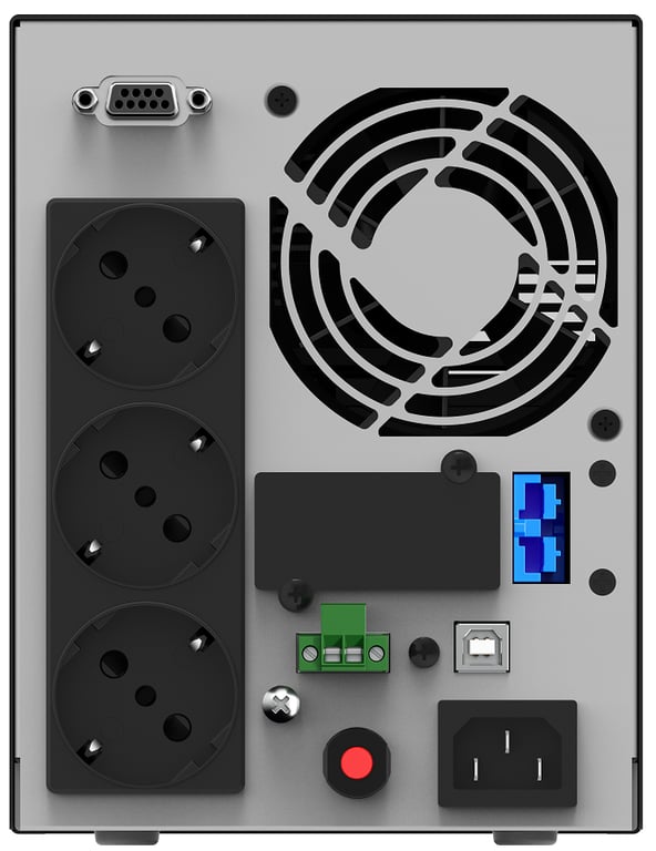 PowerWalker VFI 1000 AT. Топологія ДБЖ: Подвійне перетворення (онлайн), Максимальна налаштована потужність: 1 кВА, Фактична потужність: 900 W. Типи виходів змінного струму: Тип F, Штекер: панель C14, Кількість мережевих розеток: 3 x розетки. Ємність акумулятора: 9 Ач, Напруга акумулятора: 12 V. Планування: Компактний, Колір виробу: Чорний, Тип дисплея: РК-ДИСПЛЕЙ. Ширина виробу: 140 мм, Глибина виробу: 329 мм, Висота виробу: 191 мм