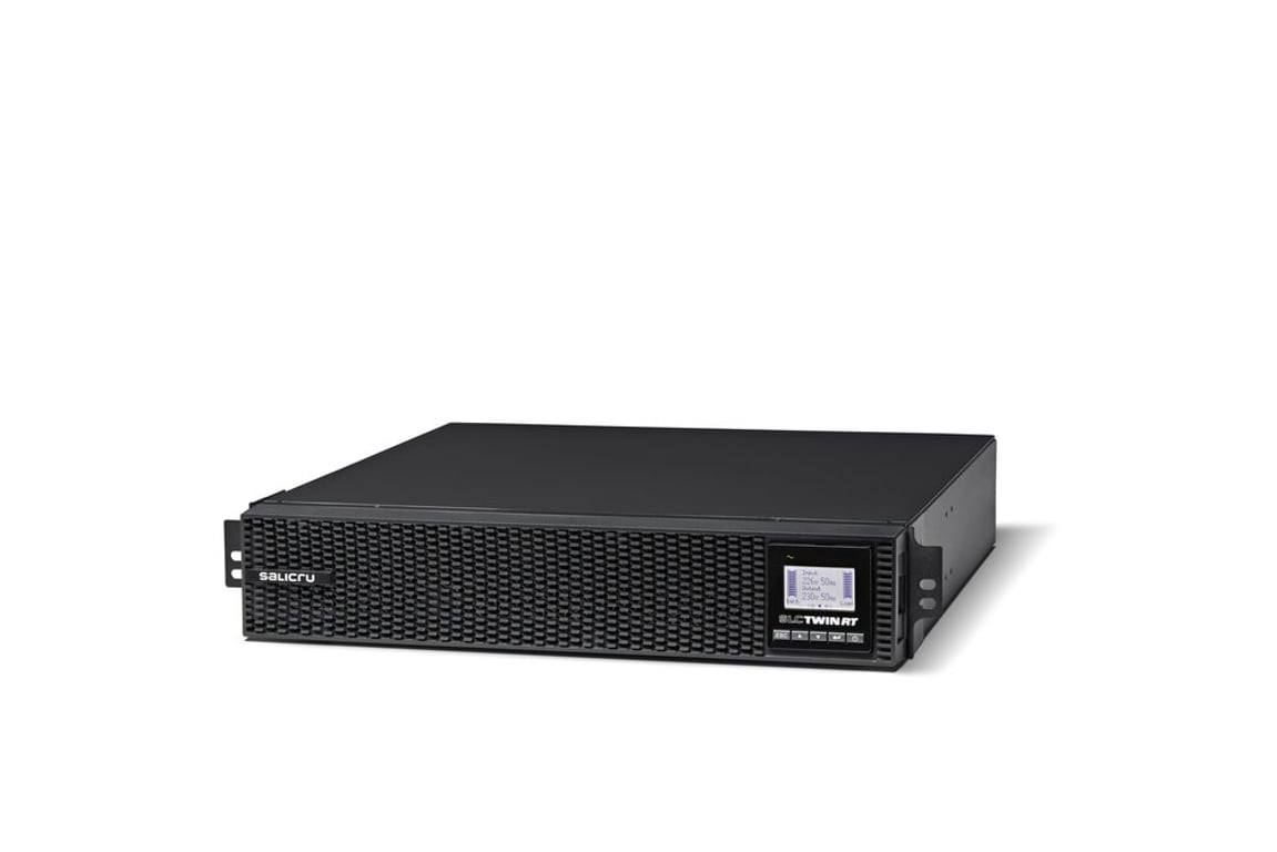 Salicru SLC-1500-TWIN RT3 B1. Топологія ДБЖ: Подвійне перетворення (онлайн), Максимальна потужність, що налаштовується: 3 кВА, Фактична потужність: 1500 W. Типи виходів змінного струму: панель C19, штекер: панель C13. Технологія батареї: Свинцево-кальцієві (Pb-Ca), Час зарядки: 3 год, Зарядний струм: 1,5 A. Розташування: Монтаж в стійку/вежу, Колір виробу: Чорний, Безпека: EN IEC 62040-1, EN IEC 62040-2(C2), VFI-SS-31 (EN 62040-3). Ширина виробу: 438 мм, Глибина виробу: 445 мм, Висота виробу: 86 мм