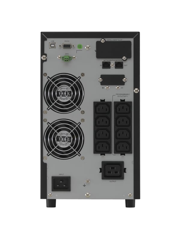 ДБЖ ONLINE USV-Systeme XANTO 3000 Топологія ДБЖ: Подвійне перетворення (онлайн), Максимальна потужність, що налаштовується: 3 кВА, Фактична потужність: 3000 W. Типи виходів змінного струму: панель C13, панель C19, штекер: панель C20, Кількість мережевих розеток: 9 х розеток. Ємність акумулятора: 9 Ач, Напруга акумулятора: 12 В, Типовий час резервного живлення при повному навантаженні: 6 хв. Компонування: Баштовий, Колір виробу: Чорний, Тип охолодження: Активне. Ширина виробу: 190 мм, Глибина виробу: 415 мм, Висота виробу 335 мм