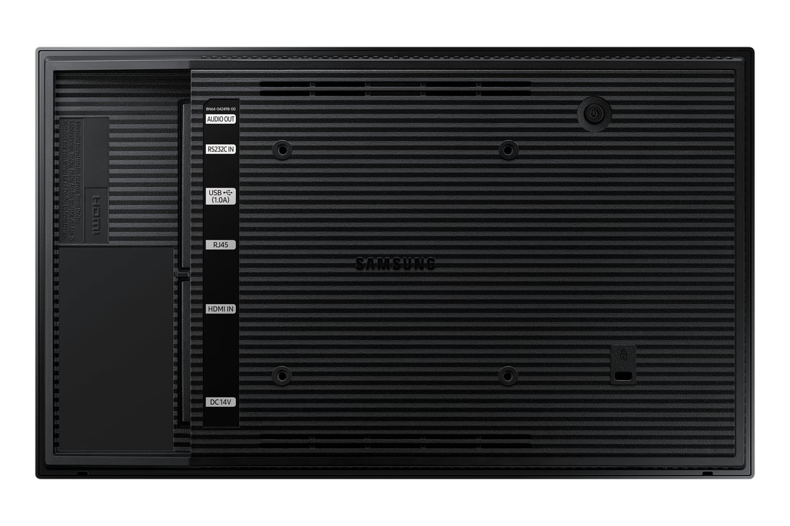 Samsung QB13R-M. Дизайн продукту: Плоска панель для цифрових вивісок. Довжина діагоналі екрану: 33 см (13"), Технологія дисплея: LCD, Роздільна здатність: 1920 x 1080 px, Яскравість: 500 кд/м², Тип HD: Full HD. Wi-Fi. Час роботи (годин/днів): 16/7, Встановлена операційна система: Tizen 4.0, Колір виробу: чорний.