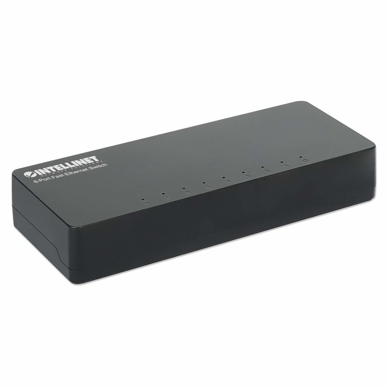 Intellinet 561730 Базові комутаційні порти Ethernet RJ-45 Тип: Fast Ethernet (10/100), базова комутація RJ-45 Кількість портів Ethernet: 8. повний дуплекс. Розмір адресної таблиці: 1000 записів, Пропускна здатність маршрутизації/комутації: 1,6 Гбіт/с. Стандарти зв'язку: IEEE 802.3, IEEE 802.3az, IEEE 802.3u, IEEE 802.3x