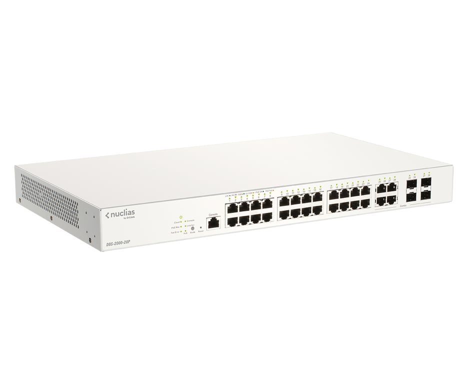 D-Link DBS-2000-28P. Базова комутація RJ-45 Кількість портів Ethernet: 24. Пропускна здатність маршрутизації/комутації: 56 Гбіт/с. Стандарти зв'язку: IEEE 802.3ad, IEEE 802.3at. Підтримка PoE