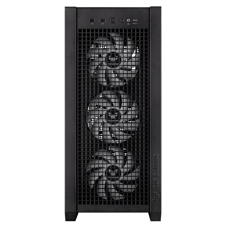ASUS TUF Gaming GT302 ARGB. Тип: Midi Tower, Модель: ПК, Колір продукту: Чорний. Встановлено фронтальні вентилятори: 3x 140 мм, Підтримуваний діаметр передніх вентиляторів: 140 мм, Встановлені задні вентилятори: 1x 140 мм. Підтримувані розміри жорстких дисків: 2.5, 3.5. Ширина виробу: 235 мм, Глибина виробу: 485 мм, Висота виробу: 520 мм. Ширина упаковки: 592 мм, Глибина упаковки: 309 мм, Висота упаковки 598 мм