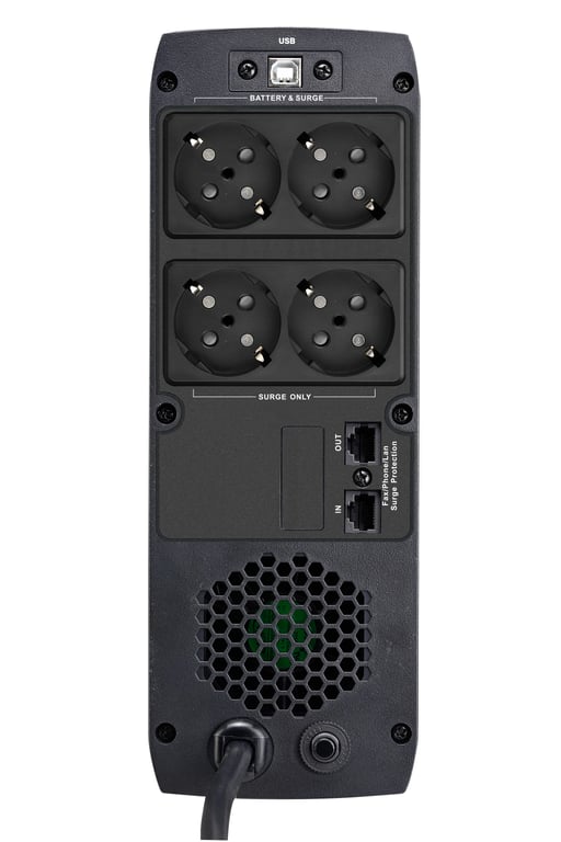 ДБЖ FSP ST 1200 Топологія: лінійно-інтерактивна технологія, Максимальна настроювана потужність: 1,2 кВА, Фактична потужність: 720 W. Типи виходів змінного струму: Тип F, Кількість мережевих розеток: 4 x розетки, Тип порту USB: USB Type B. Ємність акумулятора: 18 Ач, Напруга акумулятора: 12 В, Час зарядки: 6,8 h. Компонування: Баштовий, Колір виробу: Чорний, Тип охолодження: Активне. Ширина виробу: 99 мм, Глибина виробу: 410 мм, Висота виробу: 280 мм