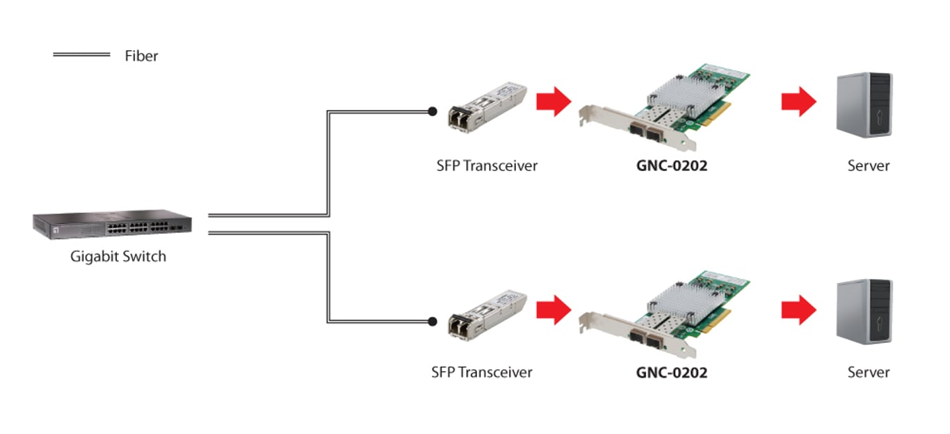 LevelOne GNC-0202 Внутрішня. Комунікаційні технології: Провідний, Інтерфейс хоста: PCI Express, Стандартні комунікаційні рішення: Оптоволокно. Колір продукту: Алюміній