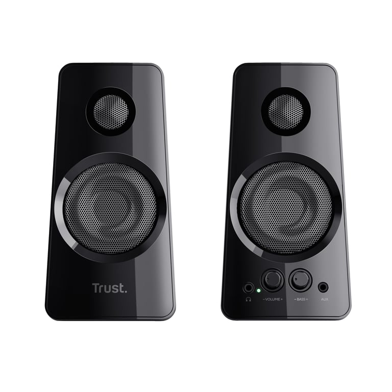 Trust Titan. Рекомендоване використання: ПК. Канали аудіовиходу: 2.0 канали. Технологія підключення: Дротова. Вихідна потужність (RMS): 18 Вт, Діапазон частот: 20 - 20000 Гц, Імпеданс: 4 Ом. Колір виробу: чорний