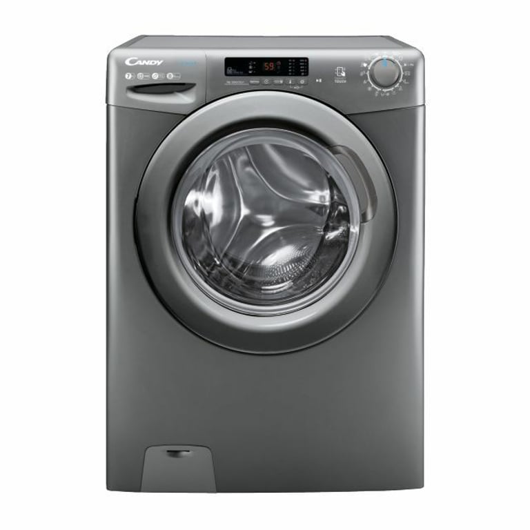 Candy Smart Pro CS 1272DRRE/1-S Тип завантаження: Фронтальне. Номінальне завантаження: 7 кг, Клас віджиму (сушка): B, Рівень шуму (віджимання): 79 дБ, Максимальна швидкість віджиму: 1200 ОБ/ХВ. Колір виробу: антрацит. Ширина виробу: 600 мм, глибина виробу: 450 мм, висота виробу: 850 мм. Клас енергоефективності: D