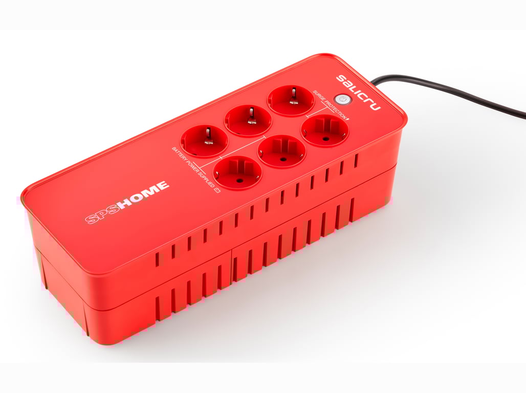 Salicru 693CA000002. Топологія ДБЖ: Standby (Offline), Максимальна налаштована потужність: 0,85 кВА, Фактична потужність: 790 W. Типи виходів змінного струму: Тип F, Кількість мережевих розеток: 6 х розеток. Час заряду акумулятора (90%): 8 h. Компонування: баштовий, Колір виробу: червоний, світлодіоди: Працюють. Ширина виробу: 121 мм, Глибина виробу: 316 мм, Висота виробу: 94 мм