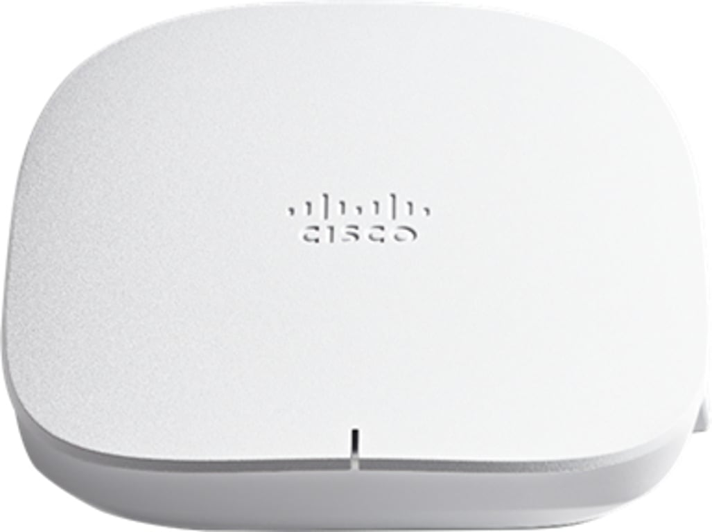 Cisco CBW150AX-EU. Максимальна швидкість передачі даних: 1200 Мбіт/с, швидкість передачі даних по локальній мережі Ethernet: 10,100,1000 Мбіт/с, Стандарти зв'язку: IEEE 802.11a, IEEE 802.11ac, IEEE 802.11ax, IEEE 802.11b, IEEE 802.11g, IEEE 802.11n. Шифрування/безпека: EAP-FAST, EAP-GTC, EAP-PEAP, EAP-SIM, EAP-TLS, EAP-TTLS, WPA, WPA2, WPA3. Розміщення: Стеля, Колір виробу: білий. Тип антени: Внутрішня. Об'єм флеш-пам'яті: 512 МБ, Об'єм внутрішньої пам'яті: 1024 МБ