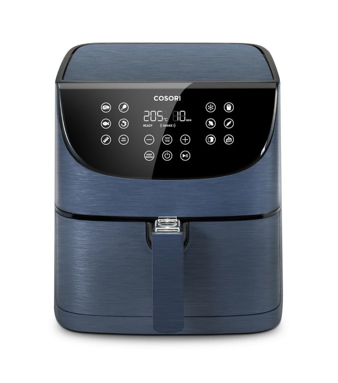Cosori CP158-AF-RXL. Тип продукту: фритюрниця, Об'єм: 5.5 л, Кількість порцій: 2.2 кг. Тип конструкції: Одинарна, Колір виробу: синій, Тип управління: Сенсорне. Потужність: 1700 Вт, Вхідна напруга змінного струму: 220 - 240 В, Вхідна частота змінного струму: 50/60 Гц. Ширина виробу: 299 мм, Глибина виробу: 321 мм, Висота виробу 398 мм