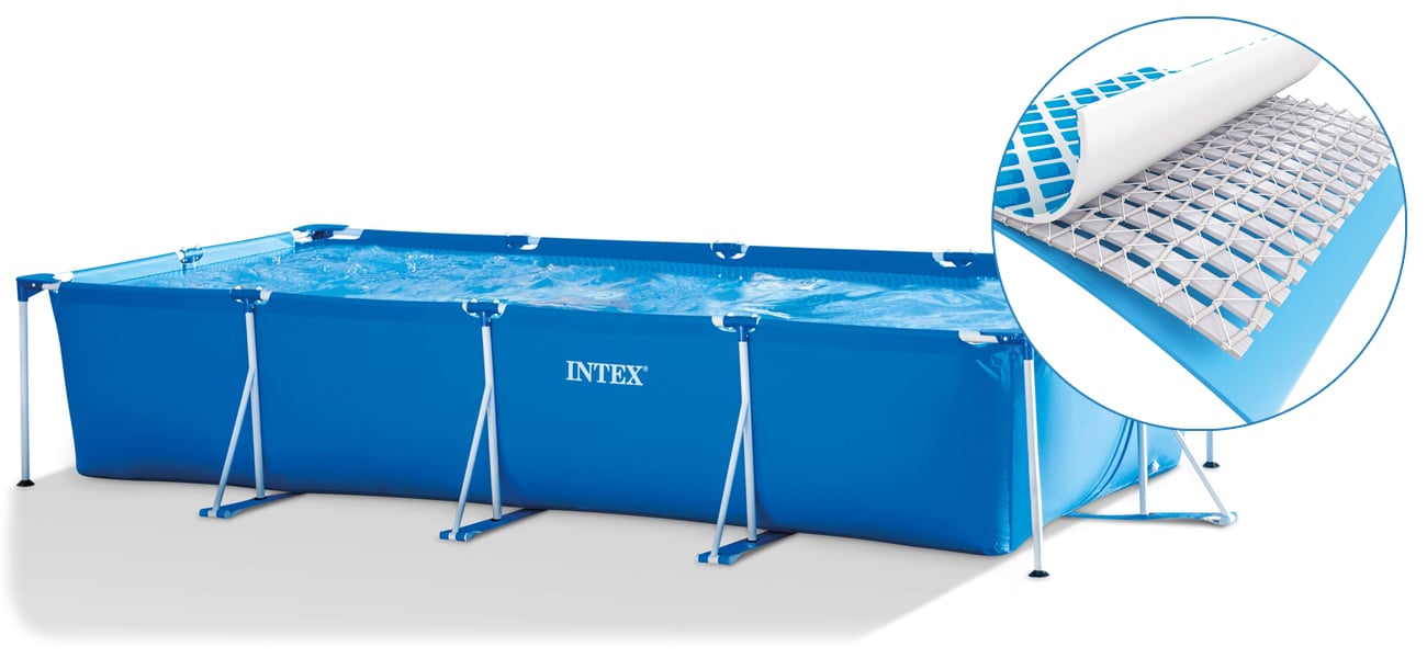 Прямокутний каркасний басейн від INTEX створений для всієї родини. Він відрізняється стійкою конструкцією, яка базується на металевому каркасі з нержавіючої сталі і доповнюється міцною оболонкою, виготовленою з ПВХ. Сімейний садовий басейн поєднує в собі функціональність і сучасність. Висока якість збірки і міцні компоненти означають, що цей басейн прослужить багато сезонів.