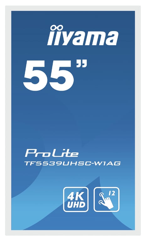 iiyama ProLite TF5539UHSC-W1AG. Довжина діагоналі екрану: 139.7 см (55"), Роздільна здатність: 3840 x 2160 px, Тип HD: 4K Ultra HD, Технологія дисплея: LED, Час відгуку (типовий): 8 мс, Співвідношення сторін: 16:9, Кут огляду (по горизонталі): 178°, Кут огляду (вертикальний): 178°. Вбудовані динаміки. Стандарт VESA. Колір виробу: білий